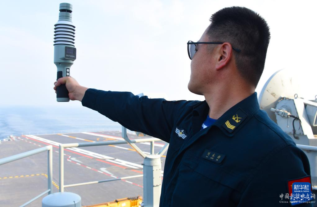 這是中國海軍福建艦上的氣象水文部門人員在海上進行人工氣象探測(5月7日攝)。新華社記者 黎云 攝
