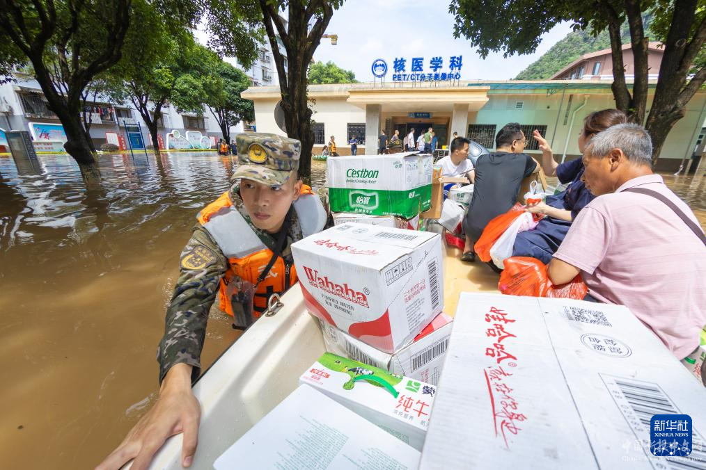 6月19日,武警廣西總隊(duì)桂林支隊(duì)官兵在桂林市南溪山醫(yī)院轉(zhuǎn)移受困群眾。新華社發(fā)(張辰飛 攝)