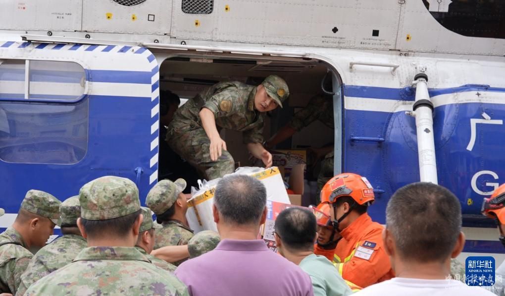 6月19日,廣東省梅州市平遠(yuǎn)縣人武部組織民兵搬運(yùn)急需物資開展緊急投送。新華社發(fā)(曾瑜 攝)