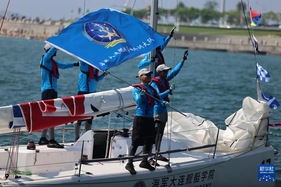 7月21日,在中國海軍主辦的首屆“海軍杯”國際帆船邀請賽開幕式上,中國海軍大連艦艇學院參賽隊參加海上入場式。新華社發(fā)(李昊天 攝)