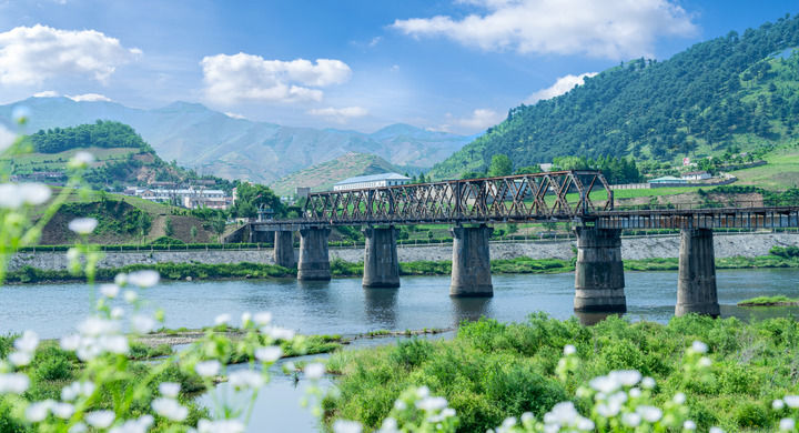 這是地處中朝邊境、位于吉林省集安市的鴨綠江國境鐵路大橋(2023年6月17日攝,無人機(jī)照片)。新華社記者 周萬鵬 攝
