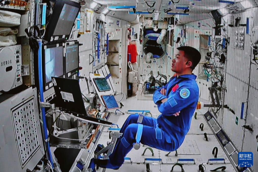 7月3日在北京航天飛行控制中心拍攝的神舟十八號航天員李廣蘇在艙內(nèi)協(xié)助出艙任務(wù)的畫面。