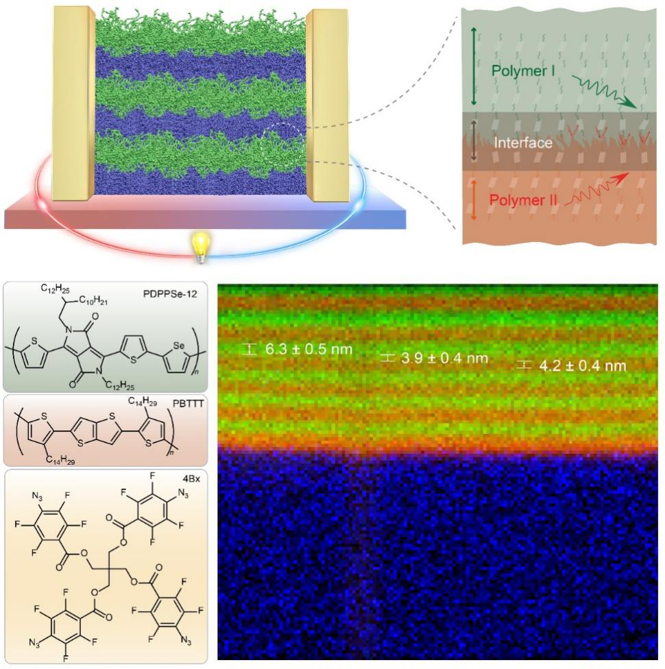 此項(xiàng)研究中,團(tuán)隊(duì)提出并構(gòu)建了聚合物多周期異質(zhì)結(jié)(PMHJ)熱電材料。測(cè)試結(jié)果顯示,該材料在特定溫度條件下的熱電優(yōu)值達(dá)到1.28,超過(guò)商品化材料在同等溫區(qū)的性能水平。同時(shí),團(tuán)隊(duì)利用溶液法技術(shù)實(shí)現(xiàn)了PMHJ薄膜的大面積制備。