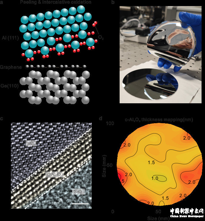 中國科學(xué)院上海微系統(tǒng)與信息技術(shù)研究所研究員狄增峰介紹,以前的介質(zhì)材料主要是用非晶的材料來做,我們這次發(fā)明主要是發(fā)明了晶體的介質(zhì)材料,通過插層氧化的技術(shù)對單晶鋁進(jìn)行氧化,實(shí)現(xiàn)了單晶氧化鋁作為介質(zhì)材料,它在1納米下能夠?qū)崿F(xiàn)非常低的泄漏電流。