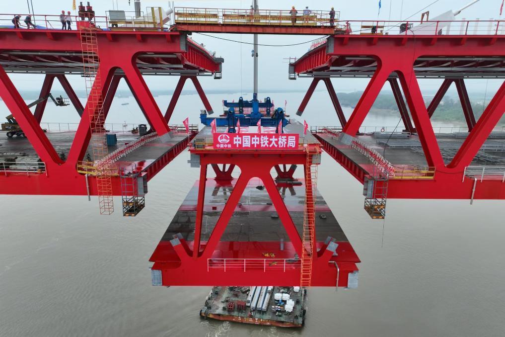 圖為G3銅陵長江公鐵大橋施工現(xiàn)場。(中鐵大橋局供圖)