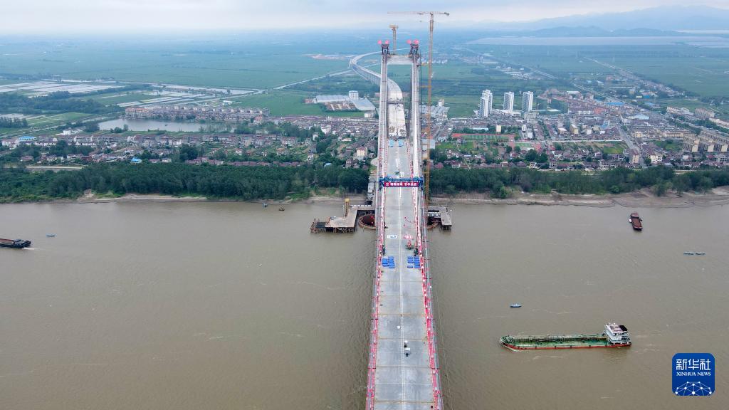 8月27日拍攝的G3(京臺高速)銅陵長江公鐵大橋合龍現(xiàn)場(無人機照片)。新華社記者 周牧 攝