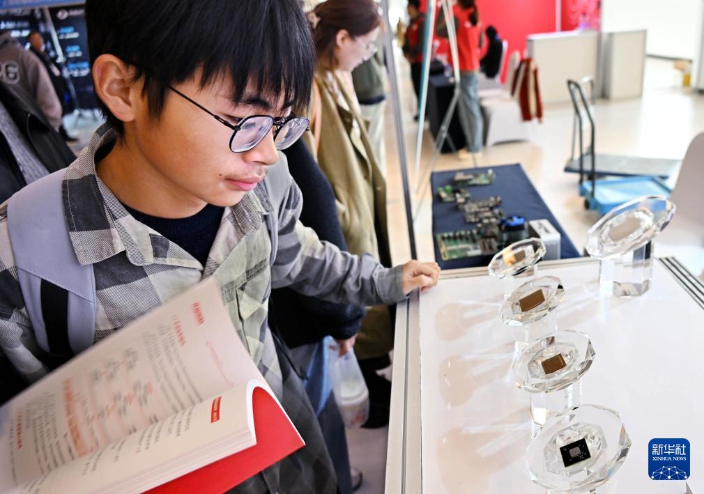 11月2日,一名與會者在2024中國自動化大會展覽區(qū)觀看國產(chǎn)芯片。