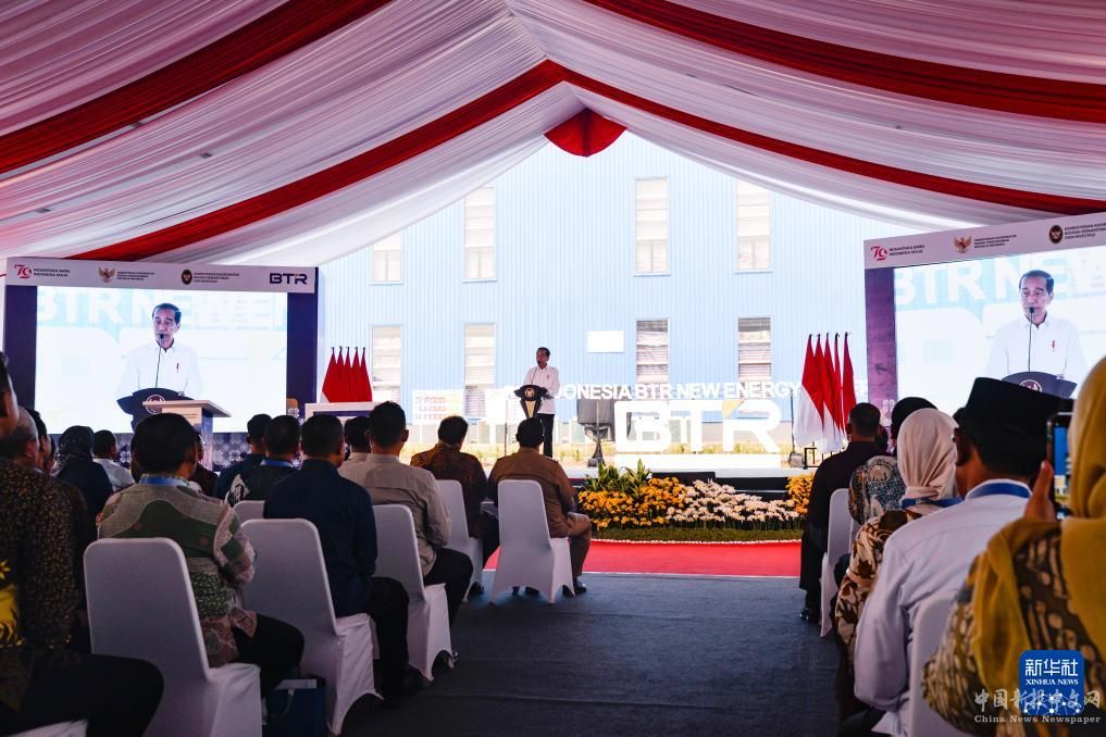 8月7日,在印度尼西亞中爪哇省,印尼總統(tǒng)佐科在貝特瑞新材料集團(tuán)印尼工廠投產(chǎn)儀式上致辭。