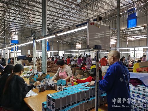 宜章縣佳鑫科技有限公司員工吳小鳳說:“老板對我們挺好的,工資有3000多元,又可以照看家里的小孩,帶娃掙錢兩不誤。”