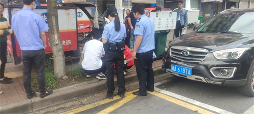 女民警聯(lián)系男子的家屬,得知男子家住芙蓉區(qū)東屯渡街道,考慮到男子駕駛電動車很危險,民警決定用警車載男子回家。
