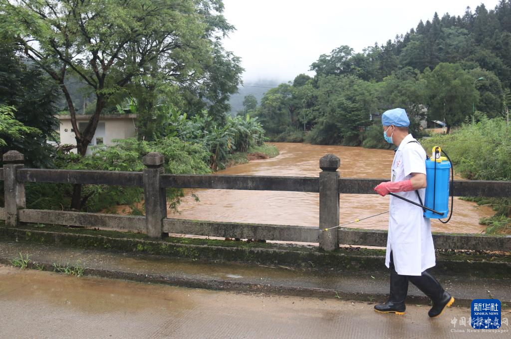 6月17日,在福建省南平市政和縣星溪鄉(xiāng)富美村,政和縣疾控中心工作人員進(jìn)行災(zāi)后消殺工作。