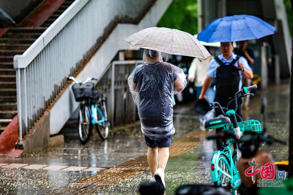 7月30日,北京市民在早高峰時(shí)段冒雨出行。中國(guó)網(wǎng)記者 鄭亮攝