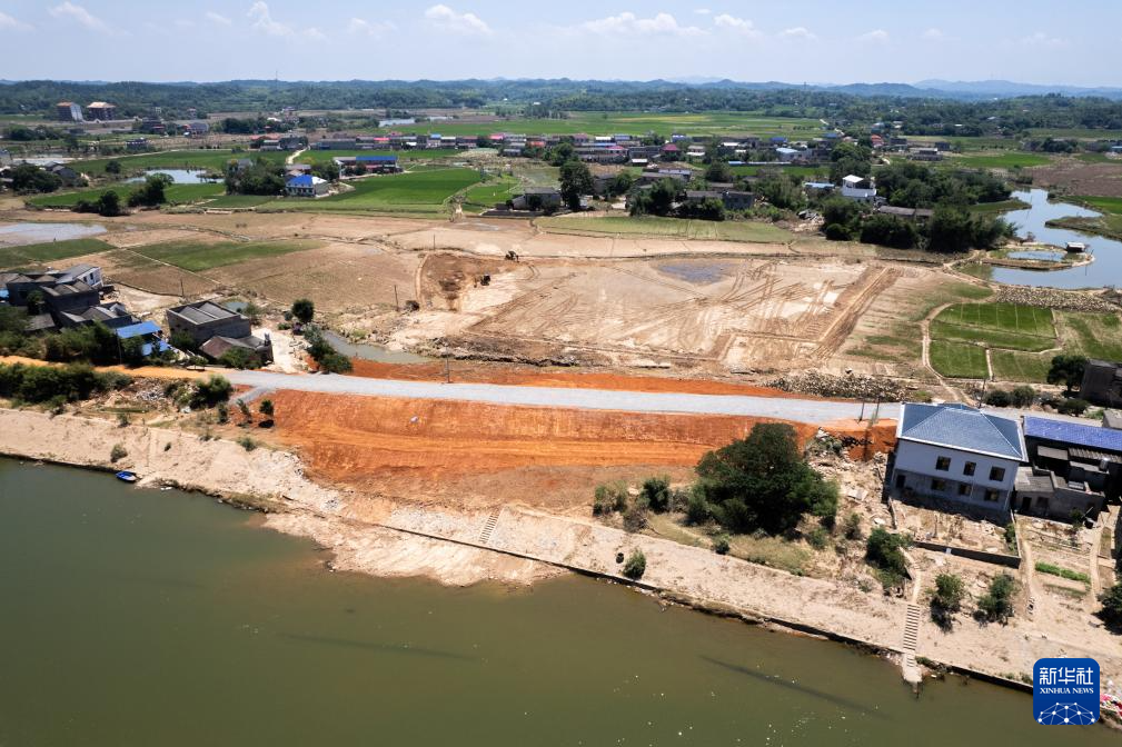 8月5日在湖南湘潭縣拍攝的涓水易俗河鎮(zhèn)四新堤段修復(fù)完成現(xiàn)場(無人機照片)。