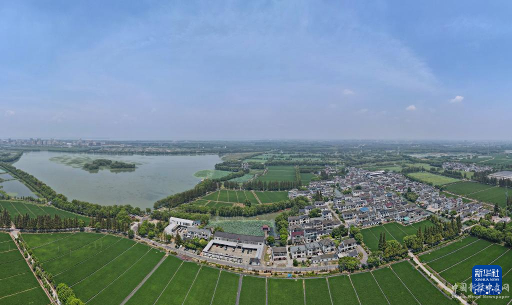 空中俯瞰位于淀山湖水域的大蓮湖及周邊的蓮湖村(8月8日攝,無人機(jī)照片)。