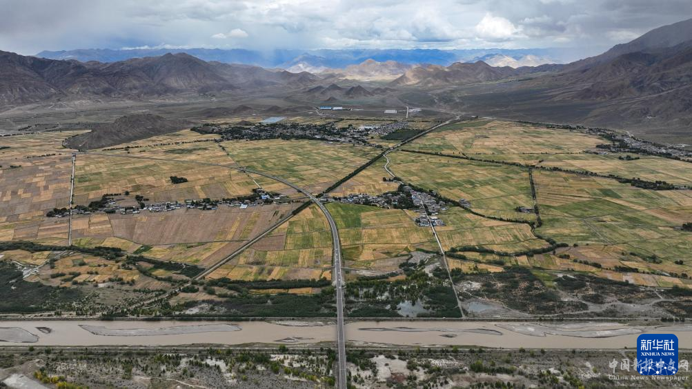 從空中俯瞰西藏拉薩至日喀則高等級(高速)公路南木林段(9月11日攝,無人機照片)。