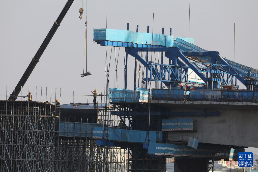 9月16日,建設(shè)者在位于河南省焦作市溫縣境內(nèi)的沿黃高速公路武陟至濟源段南水北調(diào)特大橋施工現(xiàn)場加緊施工。