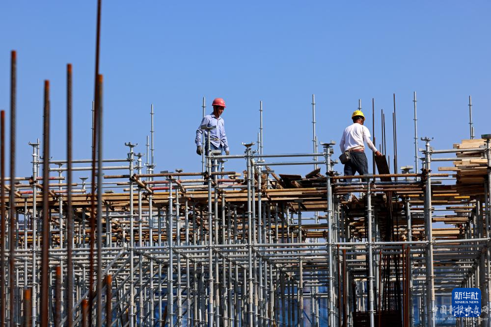 9月16日,建筑工人在山東省棗莊市一處工地上施工。