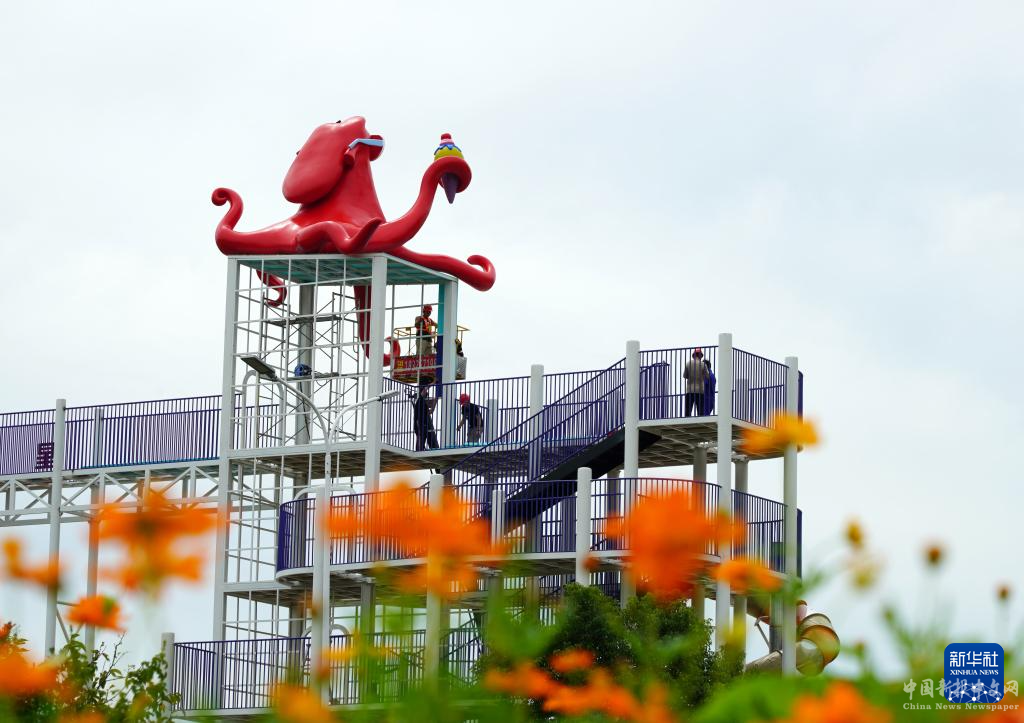 9月15日,工人在浙江省樂清市一游樂園建設(shè)現(xiàn)場施工。