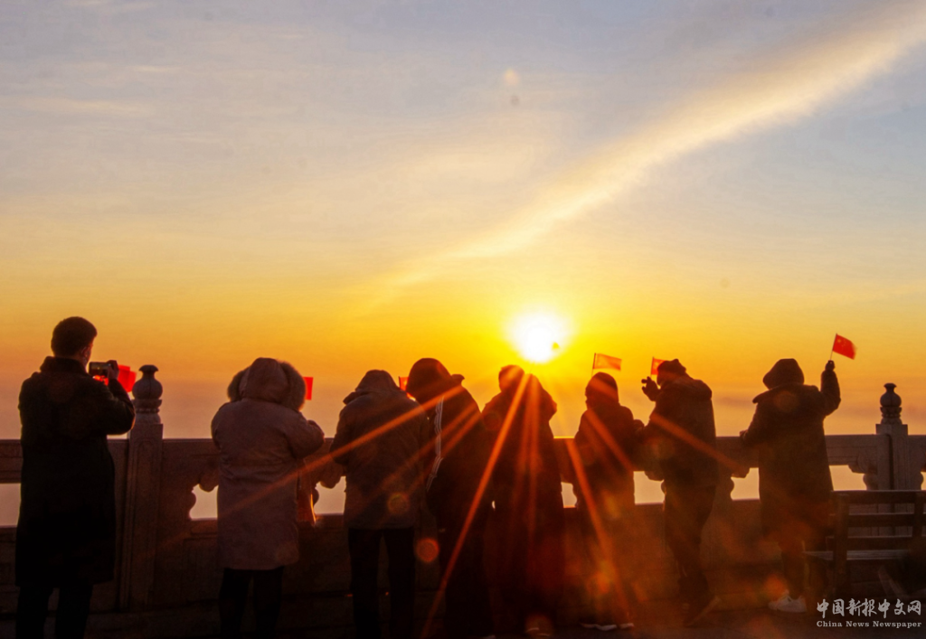 游客在山東省臨沂市沂蒙山銀座天蒙旅游區(qū)觀看日出(2023年1月1日攝)。新華社發(fā)(武紀全 攝)