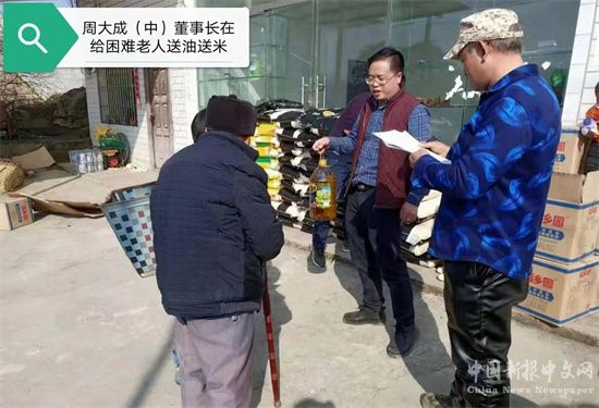 2021年1月,周大成又為連坪村樂豐村片區(qū)13個(gè)村民組142名70周歲以上的古稀老人及部分重殘人員捐贈(zèng)大米和食用油,為他們送去溫暖,奉獻(xiàn)愛心。