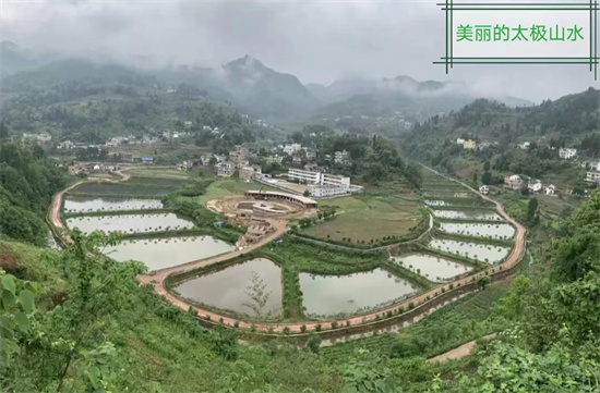 從河左岸半山腰的公路上往下看,美美的一張?zhí)珮O圖盡收眼底;河的兩岸,山清水秀,空氣清新;右岸邊,48個(gè)山塘沿著太極村幾乎繞了一圈;山塘內(nèi)的水面上,白鷺不時(shí)起飛,水中是歡奔活躍的稀罕魚(yú)兒……