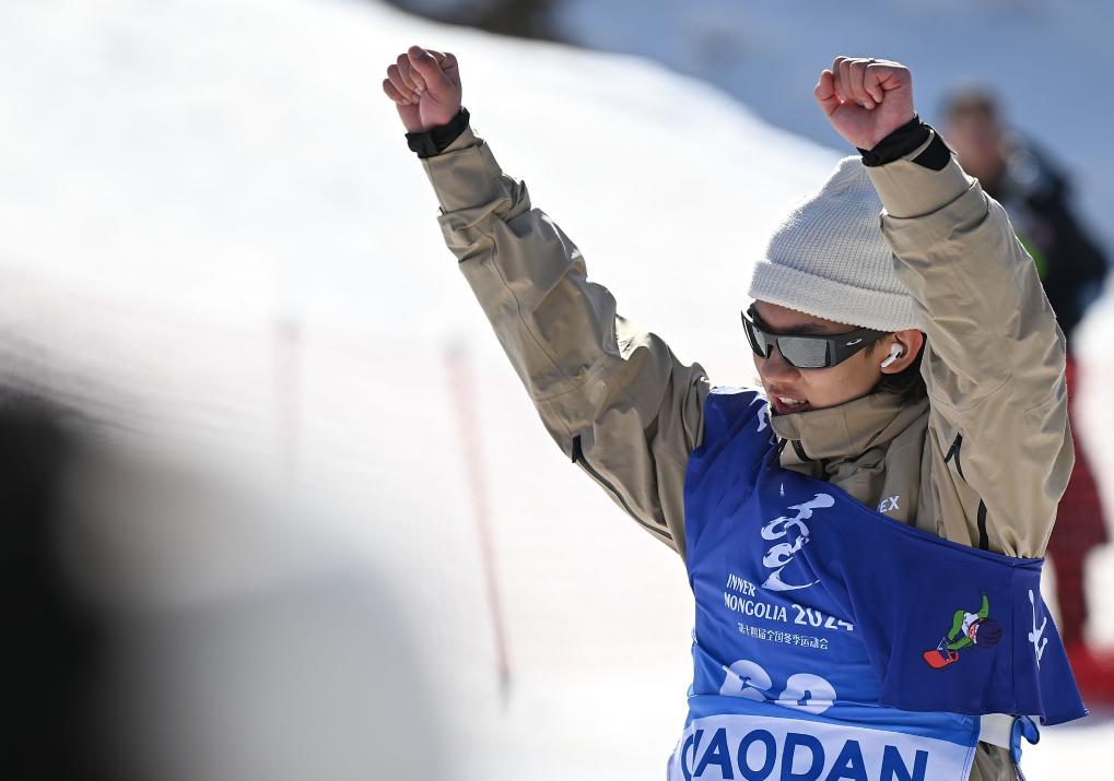 2月24日,第十四屆全國冬季運動會單板滑雪公開組男子坡面障礙技巧決賽,蘇翊鳴獲得冠軍。新華社記者 貝赫 攝