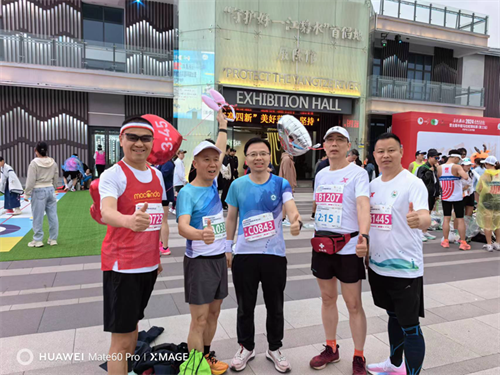 上午7:30,隨著發(fā)令槍響,馬拉松、半程馬拉松和歡樂跑一同開跑,蓄勢待發(fā)的岳陽市新的社會(huì)階層人士聯(lián)合會(huì)(簡稱:岳陽市新階聯(lián))跑團(tuán)21名參賽者,在岳陽市新階聯(lián)副主席、岳陽市跑協(xié)會(huì)長曹景毅的帶領(lǐng)下,與來全國各地的12800名跑者一起沖出起跑線。賽道上頓時(shí)匯成五顏六色的海洋,大家激情滿滿、韌勁十足,同“新”守護(hù),腳步丈量美麗岳陽,展現(xiàn)岳陽市新階聯(lián)煥發(fā)“新”活力、凝聚向心力的風(fēng)采。