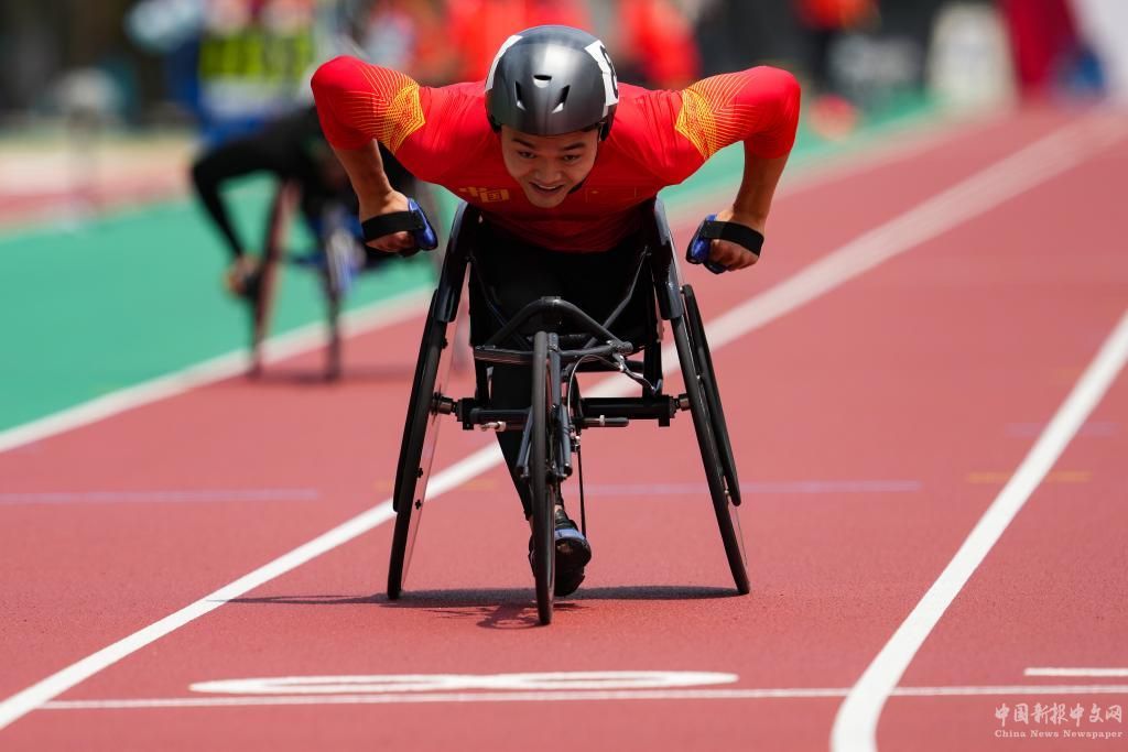 5月20日,胡洋在男子400米T54級(jí)別決賽中。新華社記者 張笑宇 攝