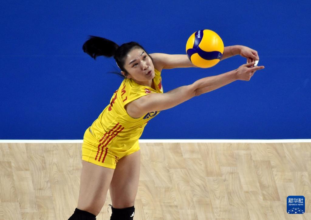6月15日,中國隊球員王夢潔在比賽中墊球。新華社記者 盧炳輝 攝