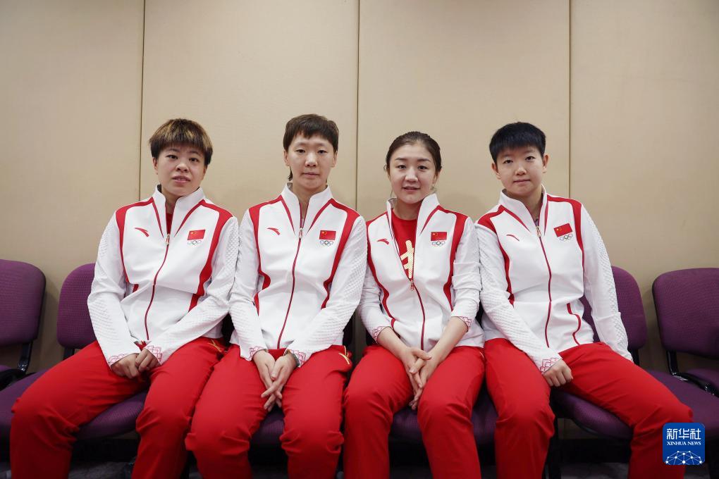 這是中國體育代表團成員王藝迪、王曼昱、陳夢、孫穎莎(從左至右)在大會前。