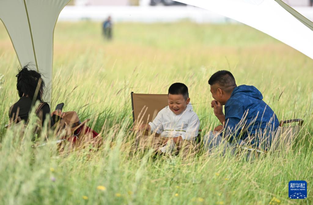 7月17日,游客在烏蘭毛都蘇木民族體育綜合訓(xùn)練基地休憩。