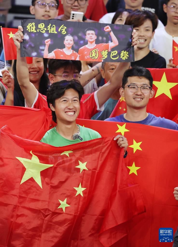 8月2日,觀(guān)眾在看臺(tái)為中國(guó)組合鄭思維/黃雅瓊助威。