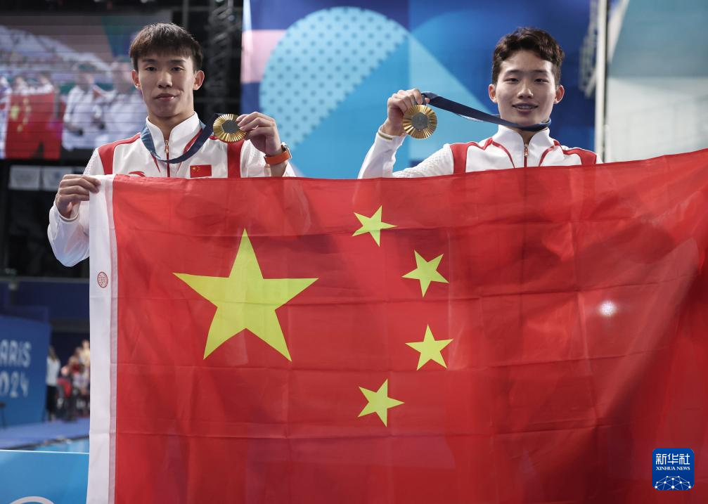 8月2日,冠軍中國選手龍道一(左)/王宗源合影。新華社記者 張玉薇 攝