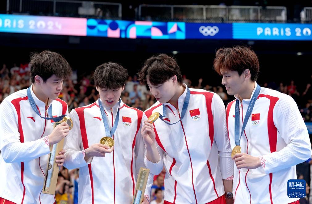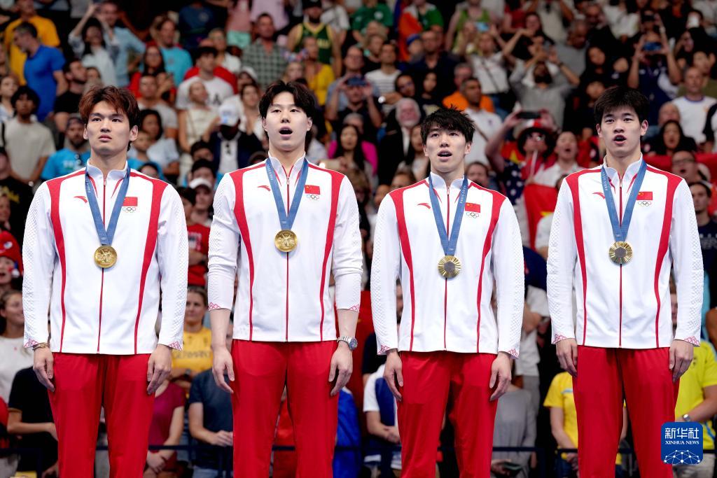 當(dāng)日,在巴黎奧運(yùn)會游泳項(xiàng)目男子4x100米混合泳接力決賽中,中國隊(duì)以3分27秒46的成績奪得金牌。