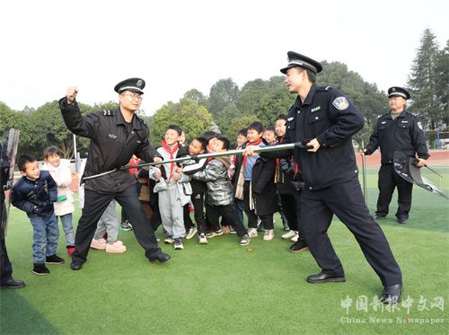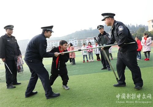 1月10日,在湖南省保靖縣清水坪學(xué)校,民警給學(xué)生講解警務(wù)知識(shí)及警用裝備的使用方法。連日來(lái),該縣公安局組織民警深入中小學(xué)校,開(kāi)展“110宣傳”進(jìn)校園活動(dòng),民警們通過(guò)知識(shí)宣講、警用裝備展示和戰(zhàn)術(shù)表演互動(dòng)等形式,并指導(dǎo)學(xué)生模擬如何報(bào)警和防騙小知識(shí),提高師生自我保護(hù)意識(shí)和能力。(俞采華 佘高衛(wèi))