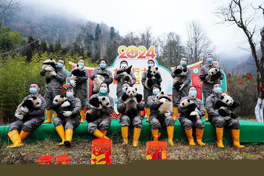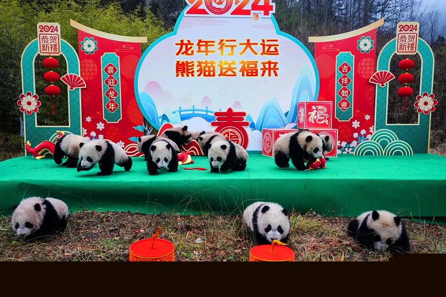 中國(guó)日?qǐng)?bào)2月6日電 在農(nóng)歷龍年春節(jié)來(lái)臨之際,中國(guó)大熊貓保護(hù)研究中心和成都大熊貓繁育研究基地聯(lián)合舉辦“龍年行大運(yùn) 熊貓送福來(lái)”新春主題活動(dòng),2023年新生大熊貓寶寶集體亮相。據(jù)了解,兩家機(jī)構(gòu)2023年共成功繁育大熊貓34只,半歲左右的大熊貓寶寶成長(zhǎng)狀態(tài)良好,萌態(tài)十足。