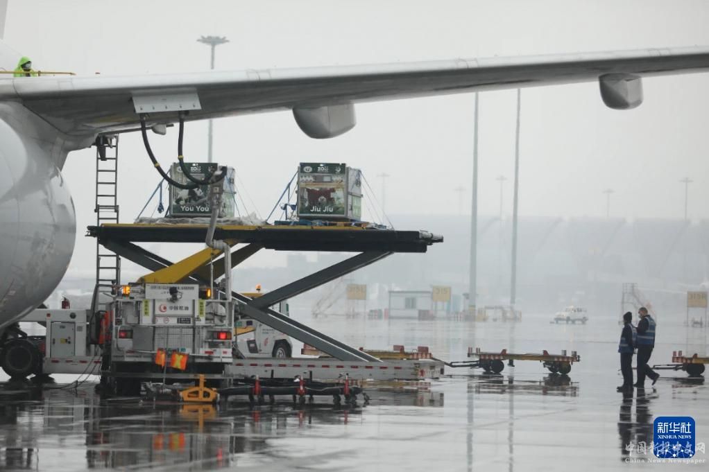 3月1日,大熊貓“冰星”“花嘴巴”及其3只幼崽“竹莉娜”“久久”“友友”平安抵達(dá)成都雙流國(guó)際機(jī)場(chǎng)。新華社發(fā)(成都大熊貓繁育研究基地供圖)