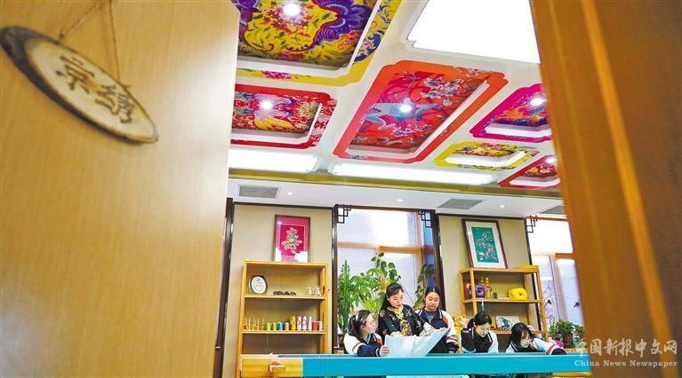北京市豐臺區(qū)職業(yè)教育中心學(xué)校,京繡工坊師生正在創(chuàng)作交流。2017年,該校設(shè)立全國首個中職非遺類專業(yè),開啟“工坊式”人才培養(yǎng)模式。