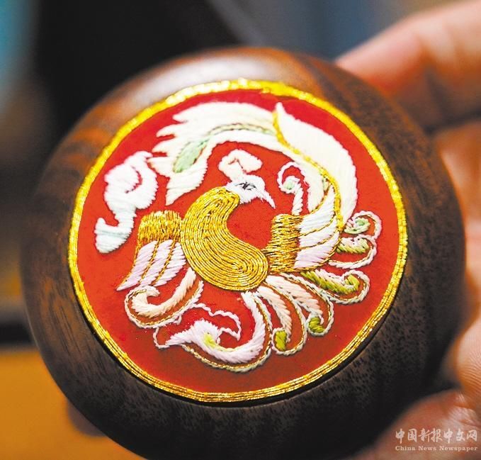 京繡傳承人劉曉燕制作的丹鳳朝陽香薰擺件。