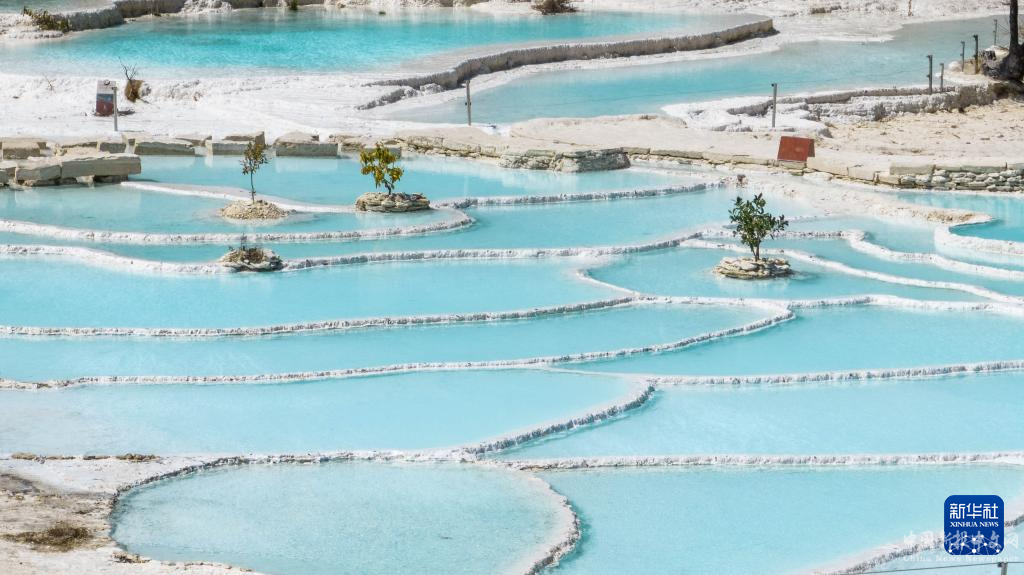 3月10日在香格里拉市三壩鄉(xiāng)拍攝的白水臺一景(無人機照片)。