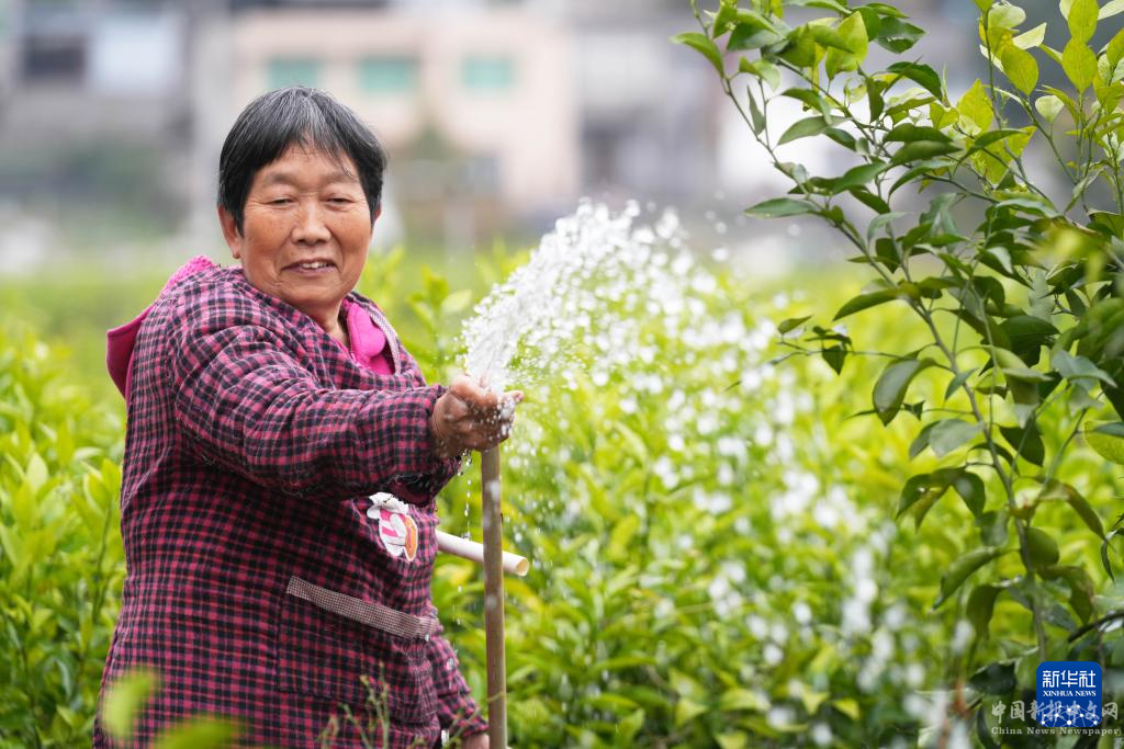 3月17日,在重慶市北碚區(qū)澄江鎮(zhèn)一柑橘種苗基地,工人在給柑橘種苗澆水。