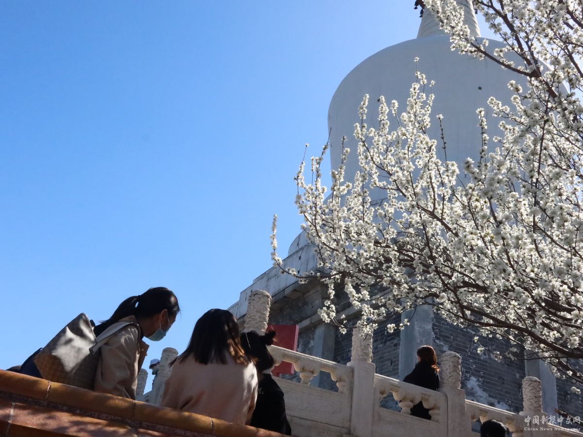 3月20日,北海公園,盛開(kāi)的山桃花與白塔相映成趣。中國(guó)日?qǐng)?bào)記者 姜東 攝