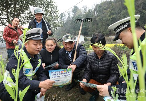 3月22日,民警在湖南省保靖縣清水坪鎮(zhèn)黃連村的田間給村民講解交通安全知識。時下正是春耕季節(jié),該縣公安局清水坪交警中隊(duì)交通安全宣傳小分隊(duì),深入田間地頭開展交通安全宣傳活動,為正在春耕的群眾送去“交通安全”的種子,為春耕生產(chǎn)創(chuàng)造安全有序的道路交通環(huán)境。(俞采華 胡  勝)