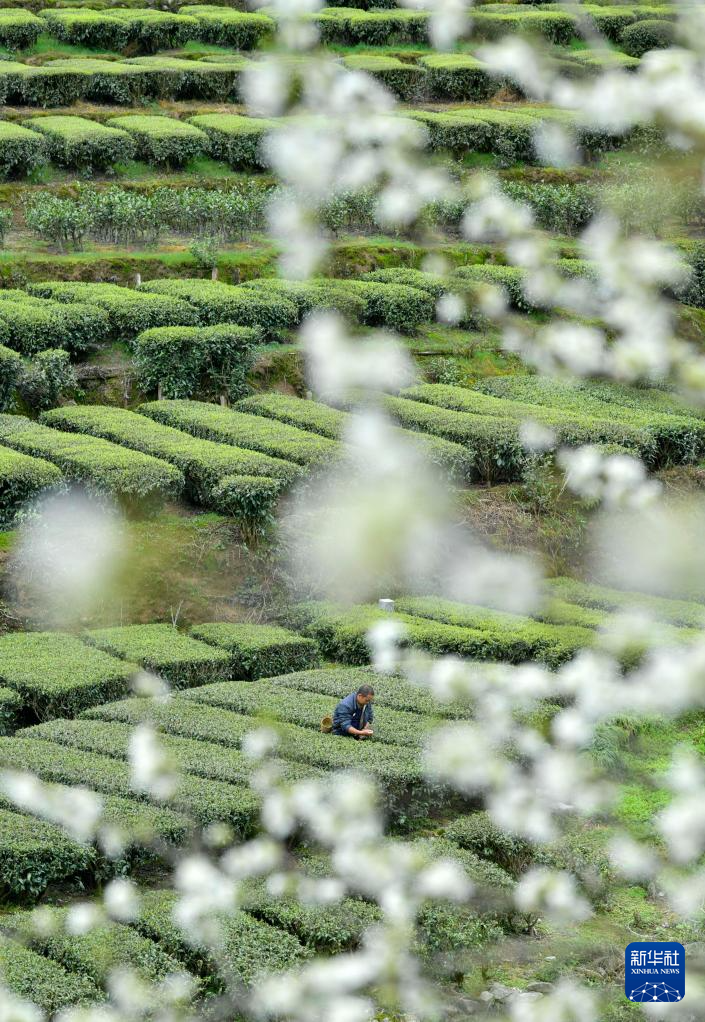 3月26日,茶農(nóng)在貴州省銅仁市松桃苗族自治縣普覺(jué)鎮(zhèn)的茶園里采茶。
