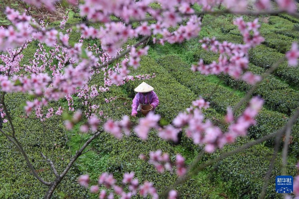 3月26日,茶農(nóng)在湖北省宣恩縣椒園鎮(zhèn)的茶園間采茶。