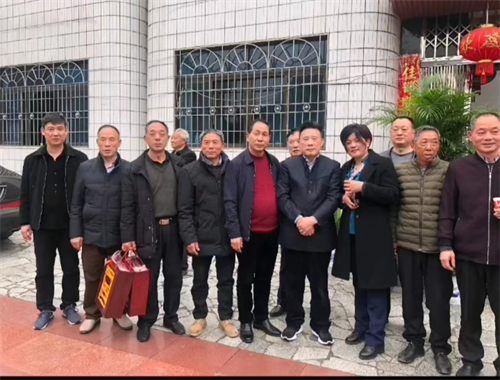 (三一集團(tuán)老總梁穩(wěn)根與羊樓司鎮(zhèn)黃沙村領(lǐng)導(dǎo)與村民代表合影)