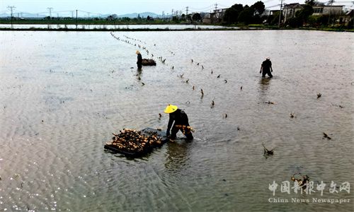 安徽廬江:氣溫回升好種藕