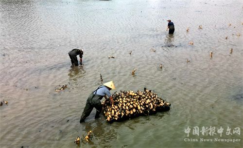近年來,廬江縣大力調整農業(yè)產業(yè)結構,將一些低洼易澇的低產田推行藕稻輪作、藕蝦共養(yǎng),實行“一田兩用”提高農民種植收入。全縣種植花香藕3萬多畝?;ㄏ闩涸谏徎ㄩ_放時就能采挖上市,藕葉等翻耕過后變成有機綠肥,栽種的水稻綠色高產。   (巢志斌 攝)