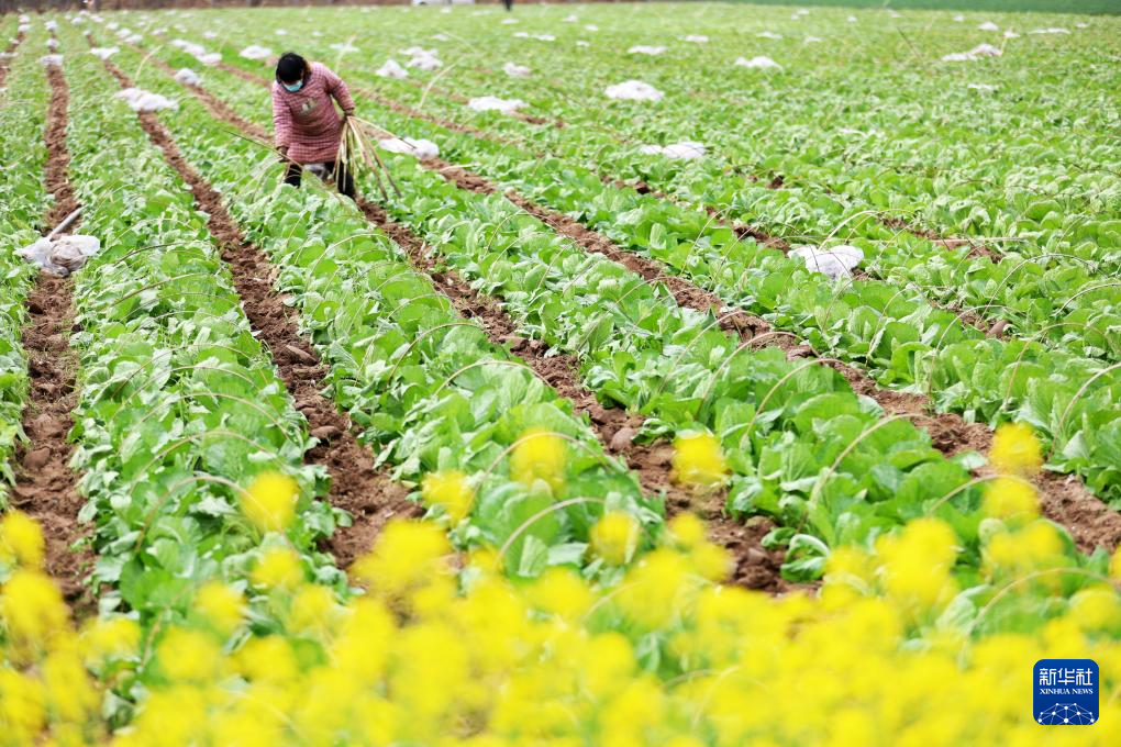 4月4日,農(nóng)民在山東省臨沂市郯城縣郯城街道呂港口村白菜田間勞作。