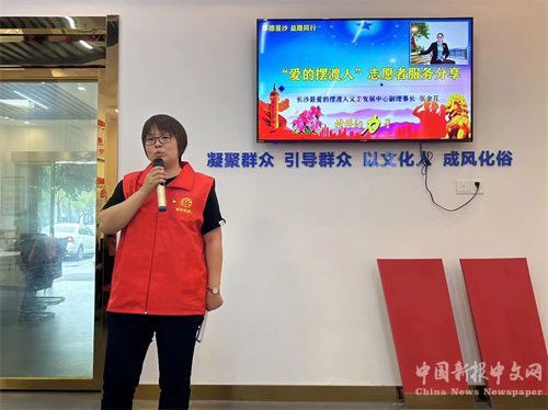 隨后,“星沙好人”、長沙縣愛的擺渡人義工發(fā)展中心理事兼果園鎮(zhèn)站站長黃新芝跟大家敘述了她在果園鎮(zhèn)組織各類公益活動近200場次,并積極帶動100多名志愿者扎根田漢故里開展系列志愿活動。作為一名普通的農村婦女,她自費10萬余元為一線工作人員提供醫(yī)藥物資、長期無償給困難家庭送藥上門、為困難家庭捐助洗衣機......她還以“干女兒”身份持續(xù)幫扶關愛因交通事故失去兒子的李氏夫婦。六年來,黃新芝募集愛心物資與慰問金總價值40余萬元,累計志愿服務時長4000小時以上,服務直接或間接受益人員達5000余人的七年愛心之路。